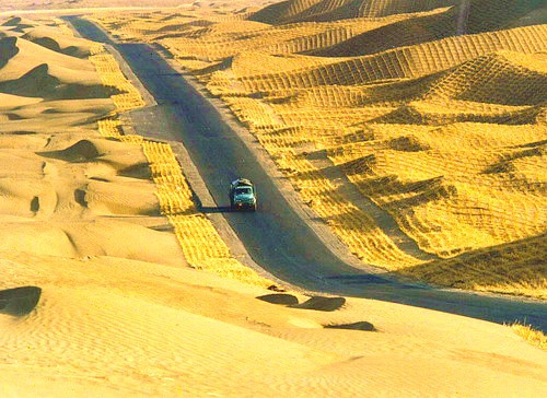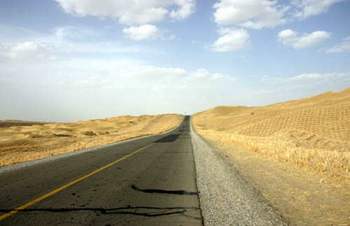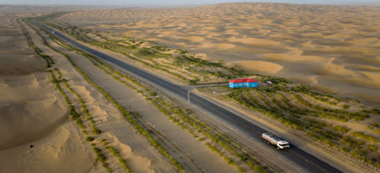 Utara-selatan lebuh raya melalui padang pasir yang dikenali sebagai "laut kematian" di Gurun Taklimakan, keinginan untuk pengunjung di seluruh merentasi Taklimakan, Lebuhraya Gurun Tarim mengambil masa 5 jam, di sepanjang jalan kita dapat melihat landskap padang pasir yang eksotik.