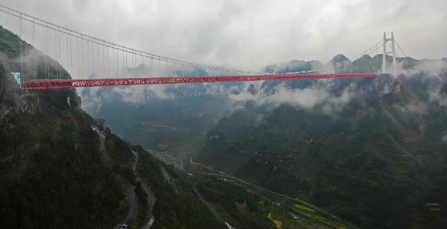 Aizhai jambatan gantung terbesar, yang terletak di wilayah bandar Western Hunan Aizhai. Jambatan Aizhai, kira-kira 20 km dari bandar Jishou, seluruh lembah berhampiran bandar Aizhai Sungai mengalir melalui lembah, ketinggian reka bentuk jambatan dan ketinggian tanah kira-kira 330 meter, panjang 1073.65m, jambatan gantung sepanjang 1176m merentasi Grand Canyon Aizhai berada di kedudukan ketiga di dunia,dan jambatan gantung terpanjang di Asia.