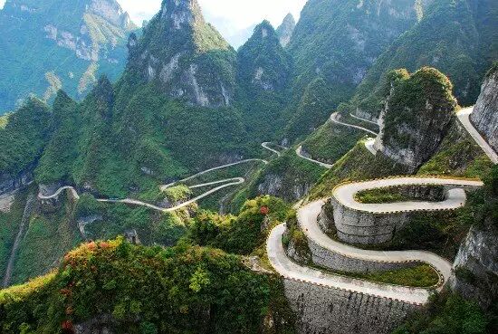 Zhangjiajie Tianmen "Babel Avenue," 10,77 kilometer, 200 meter dari aras laut daripada mendadak dinaikkan kepada 1,300 meter pada kedua-dua belah tebing Chihiro Avenue, Lembah dalam, sejumlah 99 selekoh, selekoh tajam 180 darjah